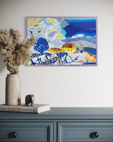 "Let's fly on" - 73x48 cm, art quilt with birds