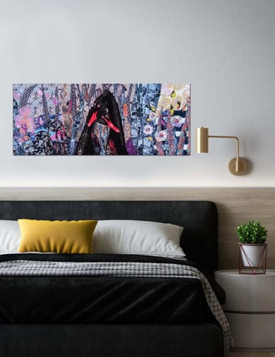 "Let's fly on" - 73x48 cm, art quilt with birds