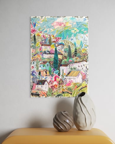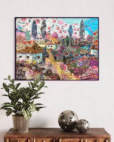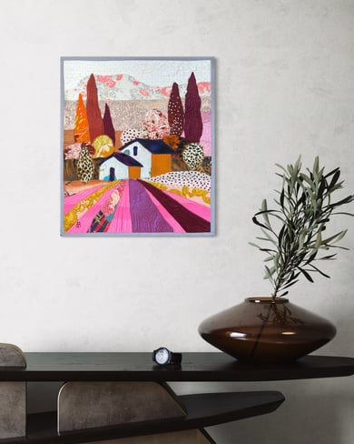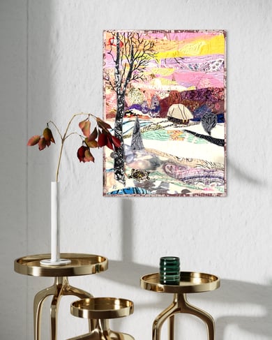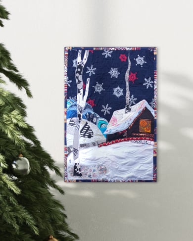 ‘Christmas Road’ - - art quilt painting, 48x68 cm