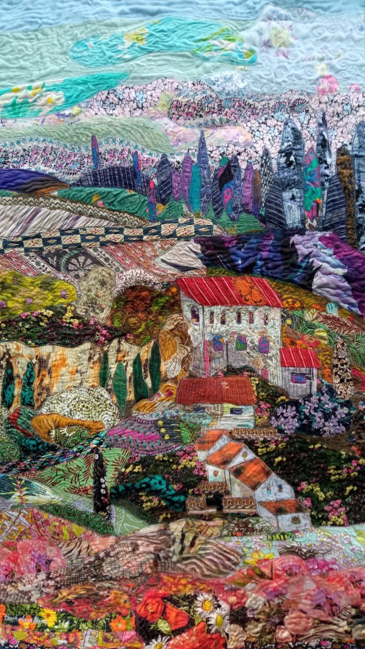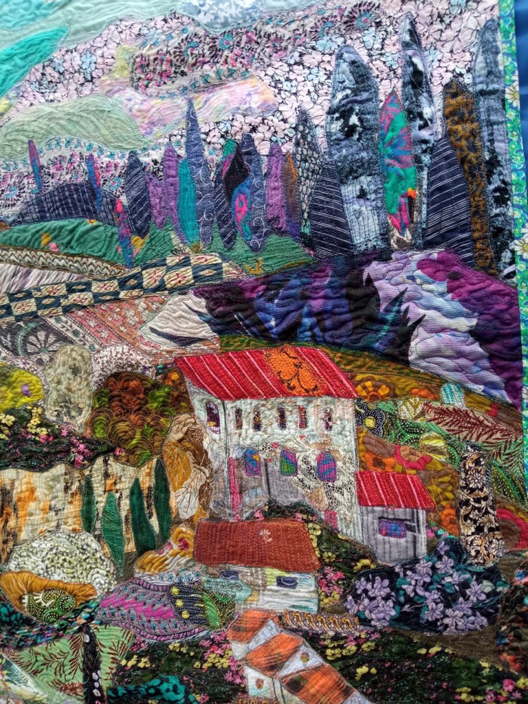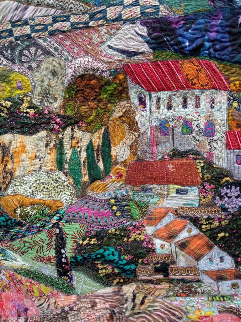 Technique: art quilt, quilt collage. I use fabric fragments of different colors, sizes and textures. I sew by hand and on a sewing machine.