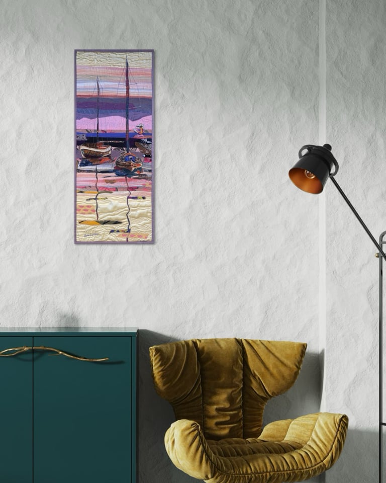 The work is done in the unique author's technique. Textile art is perfect for gift, also suitable for different spaces. Wall art is great for home decor. Easy to send and ready to hang - already has fixings for hanging. No frame is needed, but it could be framed. Could be delicately washed. The artwork already has my authenticity label with a signature on the back. Packed as a gift. Ready to send.